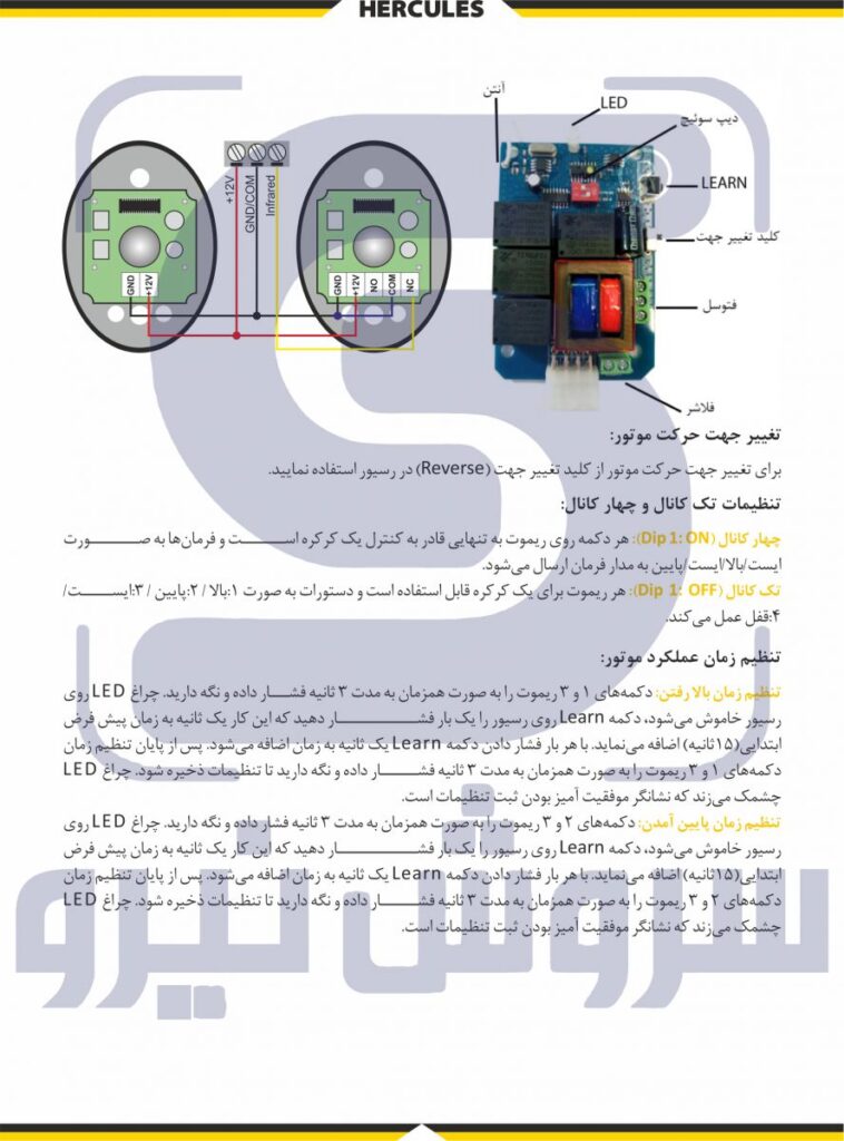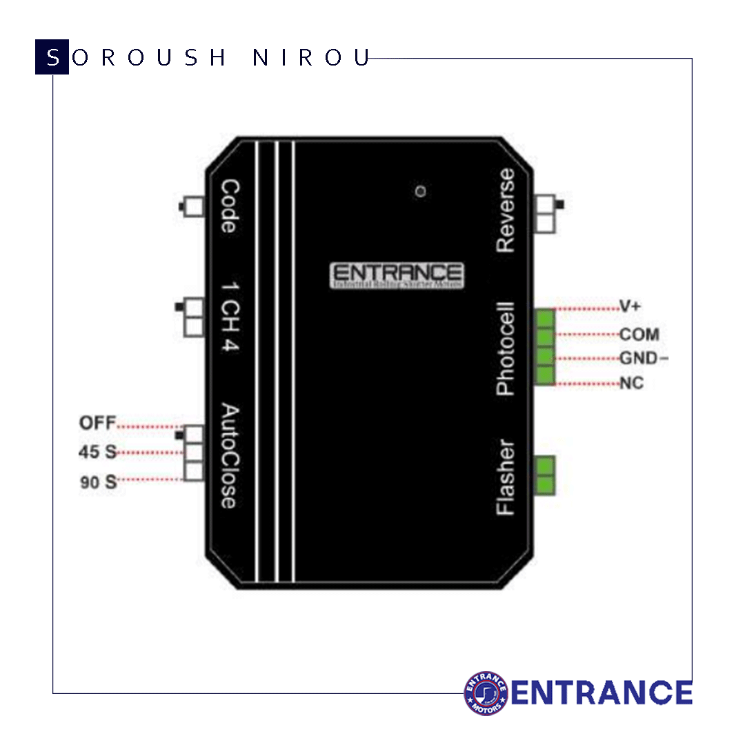 توجه: پیشنهاد میشود در صورتیکه بسته شدن اتوماتیک را فعال کردید از سنسور استفاده نمایید تا از برخورد احتمالی درب با اجسام متحرک جلوگیری شود.