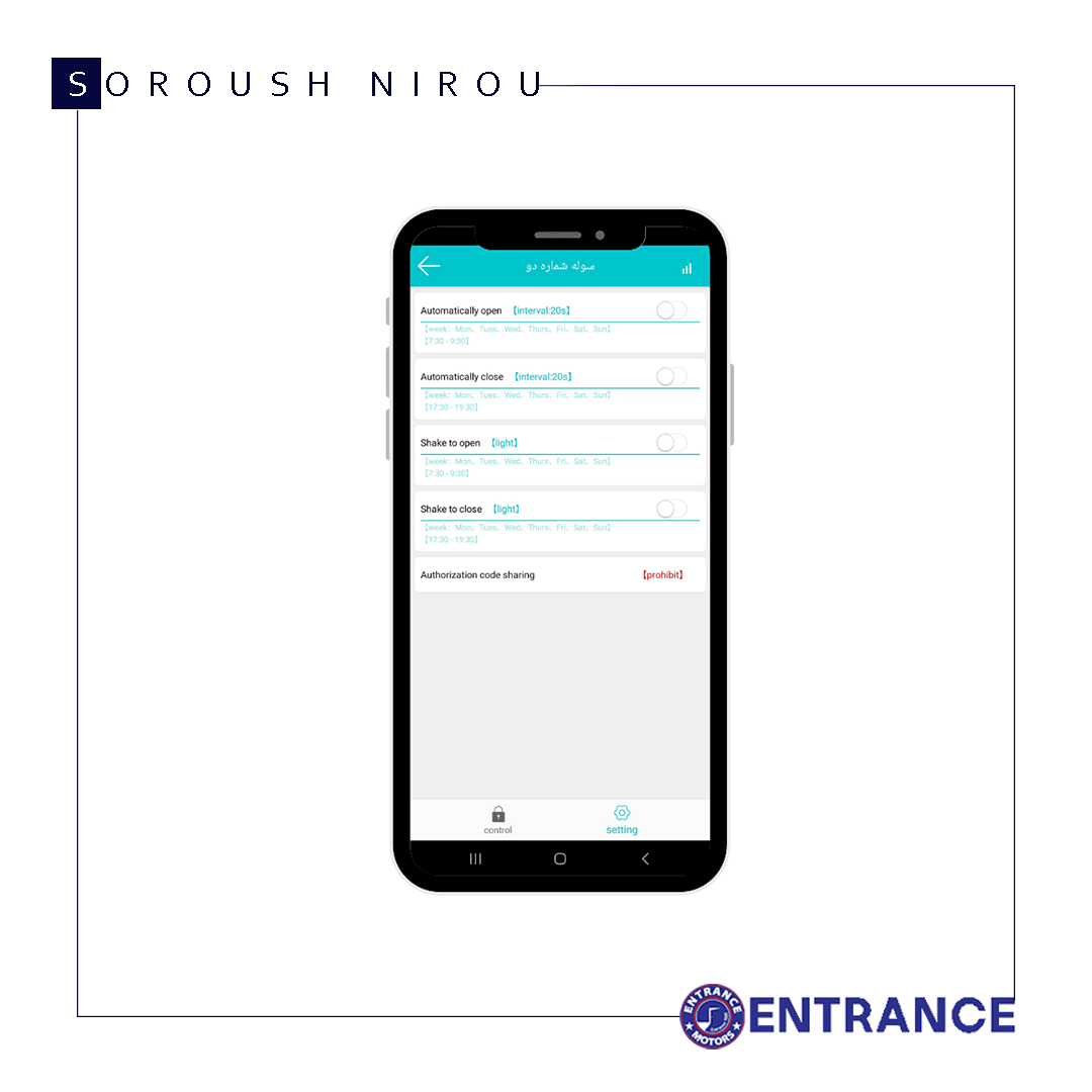 Automatically open: با روشن کردن این گزینه، زمانیکه در محدوده درب اتوماتیک قرار بگیرید، درب بصورت اتوماتیک باز میشود.