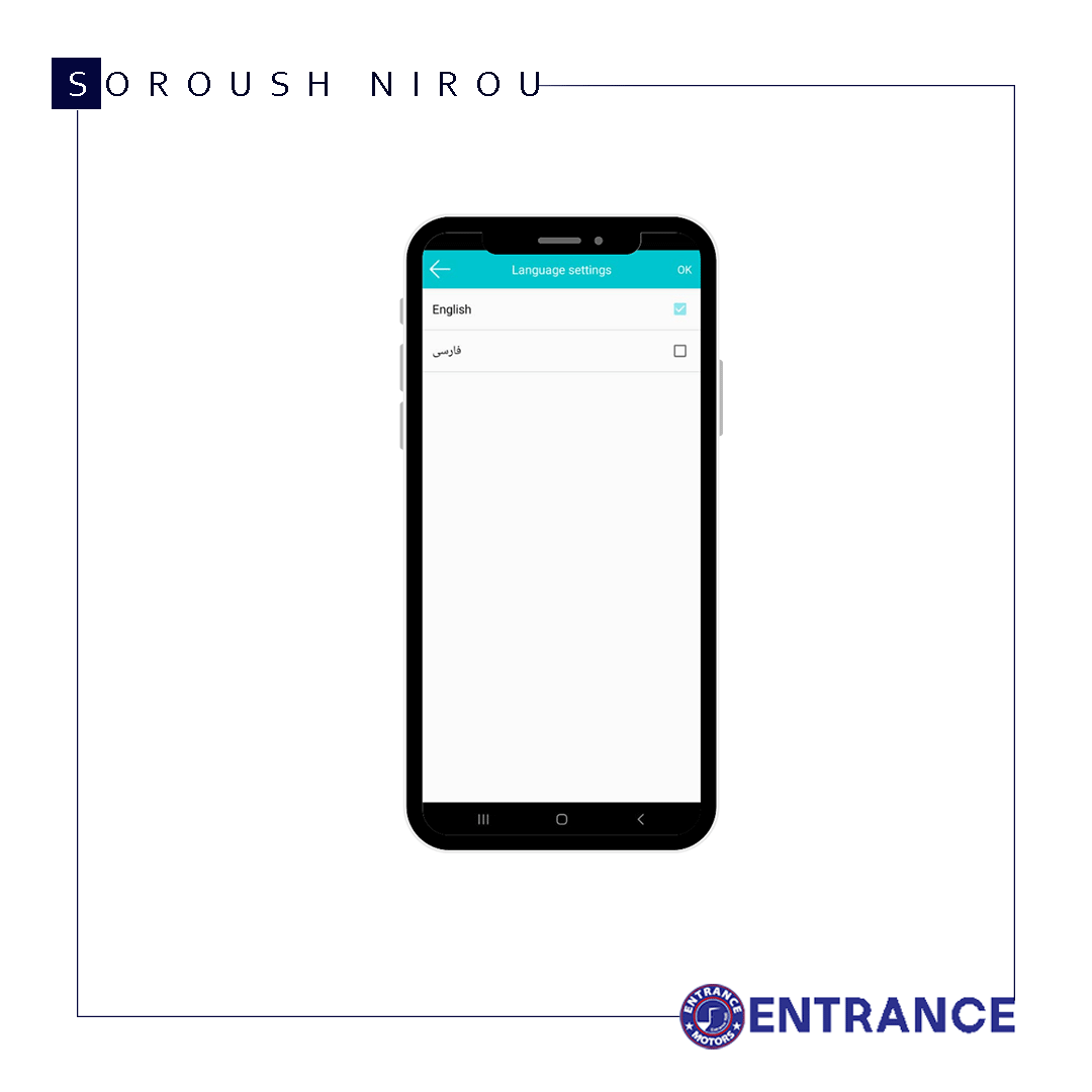 Shake to close: با روشن کردن این گزینه، زمانیکه به نرم افزار وارد میشوید، بدون نیاز به رفتن در قسمت ریموت کنترل و انتخاب دکمه پایین، با تکان دادن تلفن ، درب بسته میشود.
