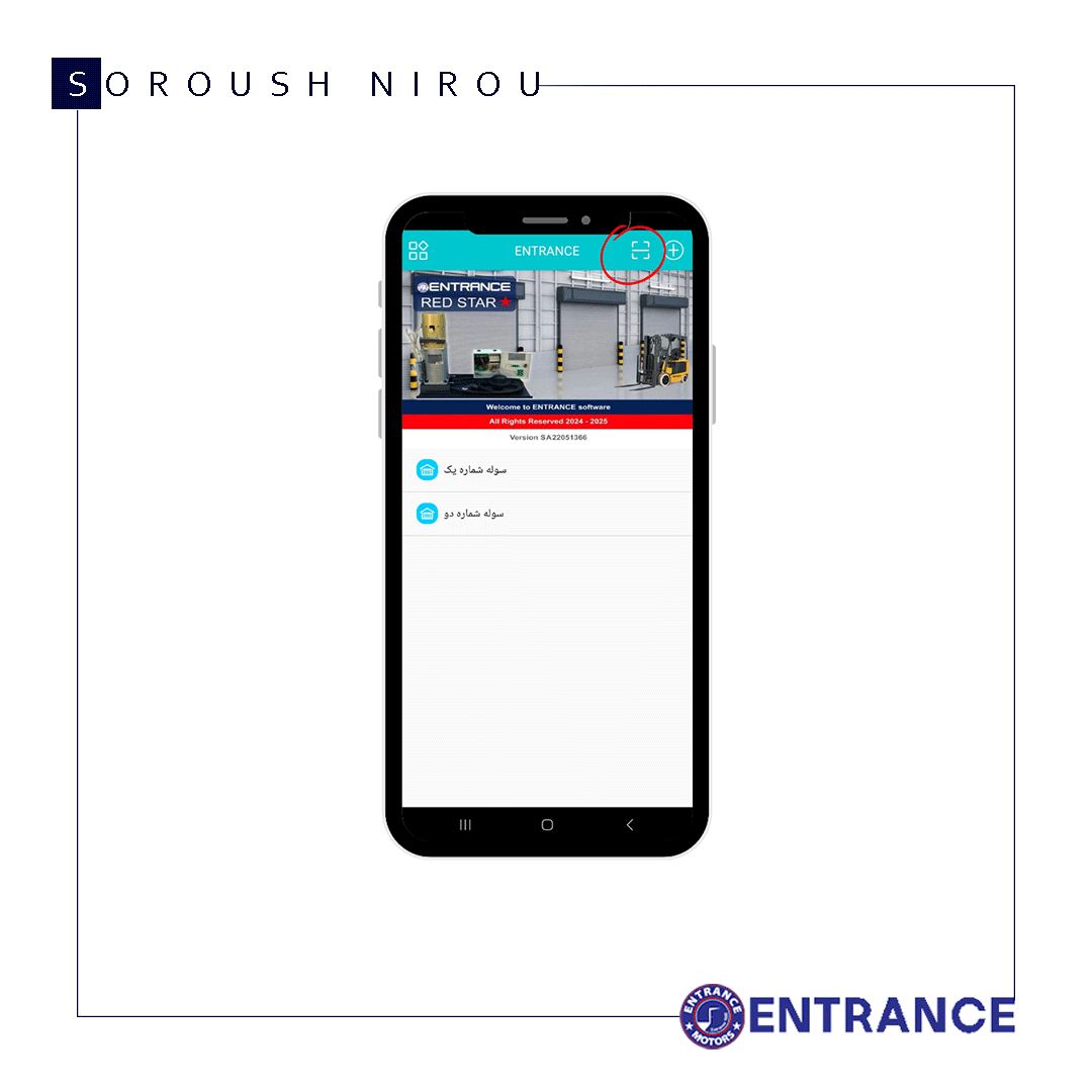 اضافه کردن گوشی جدید: ابتدا نرم افزار را در گوشی جدید دانلود نمایید، با انتخاب گزینه Scanner (بالا سمت راست) طبق تصویر ، تلفن را به حالت Scan قرار دهید ، سپس بارکد گوشی مدیر را اسکن نمایید. بدین ترتیب ریموت کنترل به گوشی جدید اضافه میشود.